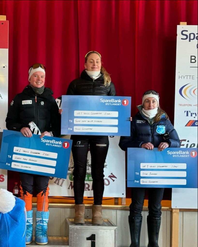 Vi gratulerer Fanny Marie Møller Endresen og Jonas Bergli som årets vinnere av Trysil Skimaraton. En lett snødryss natten før rennet gjorde at deler av løypetraseen ble kjørt opp på morgenen på renndagen og vind i noen utsatte partier gjorde at det la seg drevsnø i sporet noen steder. Ellers var det strålende sol og rundt 10 minusgrader mens rennet gikk. Til tross for at forholdene i utgangspunktet ikke var de raskeste ble det gått styggfort. Vi vil spesielt trekke frem vinneren blant damene, Fanny Marie Møller Endresen fra Drammens Ballklubb / Team Kaffebryggeriet, som satte ny løyperekord med tiden 2:11:07, en forbedring av Martine Ek Hagens løyperekord fra 2020 med 20 sekunder. Møller Endresen vant i overlegen stil og hadde hhv. ca. 5 og 10 minutter ned til Karen Marie Håkonsen, Kjellmyra IL / Team Næringsbanken Stora Enso og Stine Johansen, Åslia Skilag som utgjorde resten av pallen. I tillegg vant også Møller Endresen også Trysil Pukkverk sin spurtpris etter 19 km. og kunne totalt sett innkassere hele 9 000,- kr i premiepenger denne dagen.